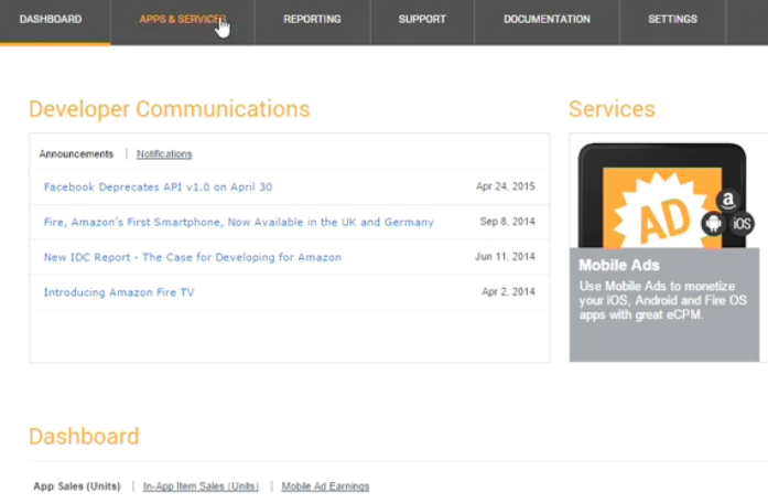 Click Apps & Services to submit your apps. NOTE: You may see a list of your current apps if you have any.