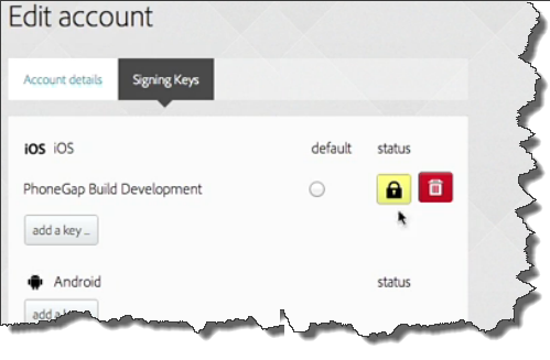 NOTE:PhoneGap Build will keep the keyunlocked for one month but you can return here and unlock it at any time.You can also set a key as the default key by selecting the Set as your default key checkbox.